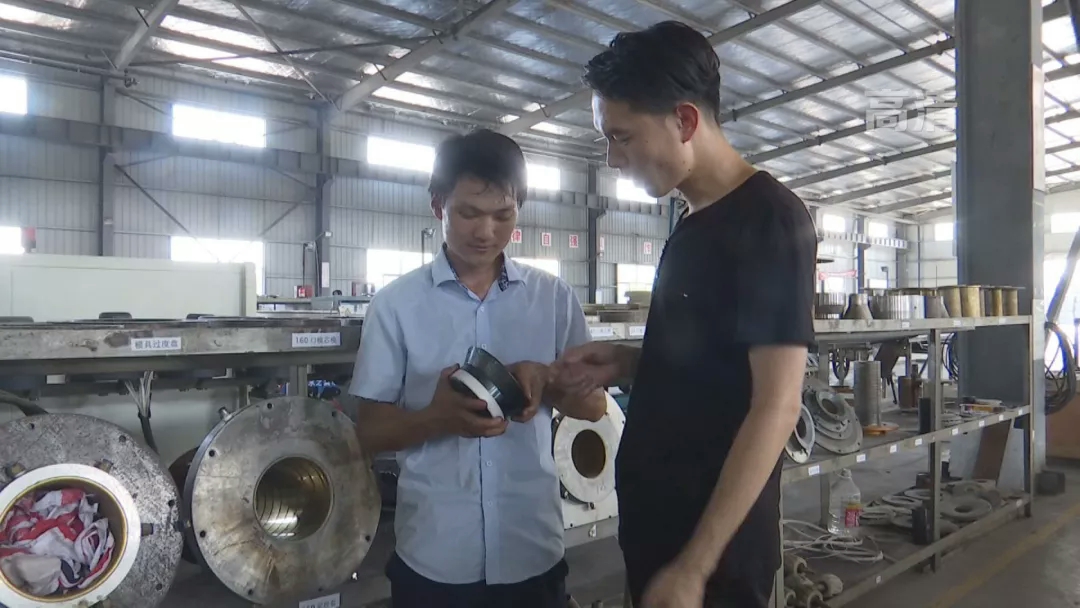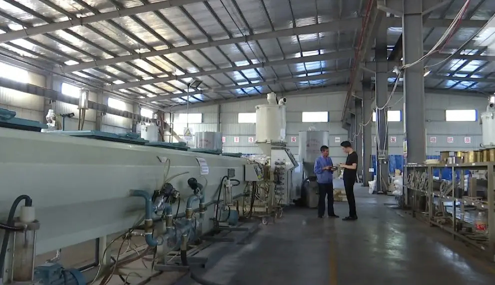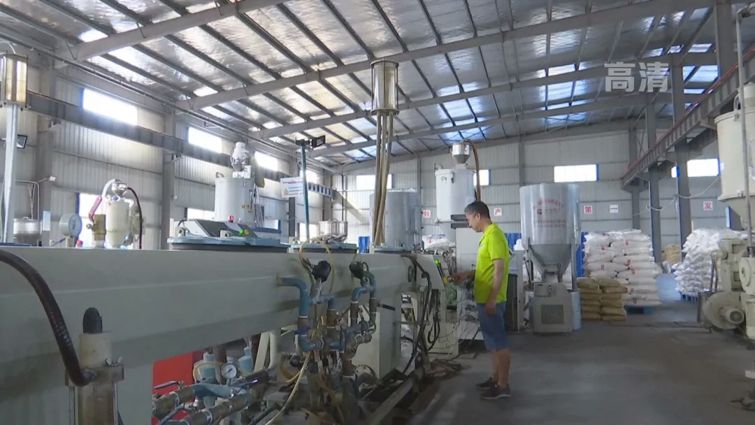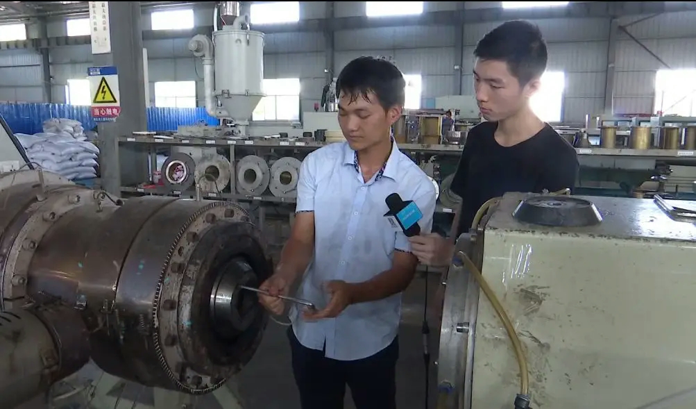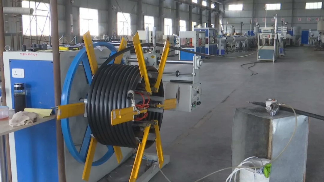这是生产管道的原材料,经过这条生产线,原材料便被加工为管道成品。生成不同管径的管道,需要更换相应尺寸的模具。2015年,工人们更换一次模具就需要花费五个小时。
