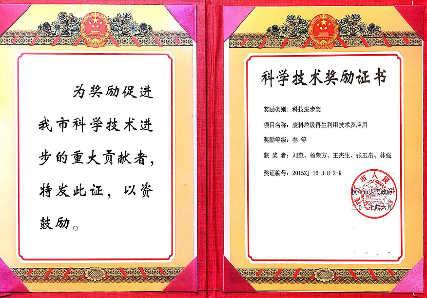 2017年6月科技进步奖三等-废料垃圾再生利用技术及应用