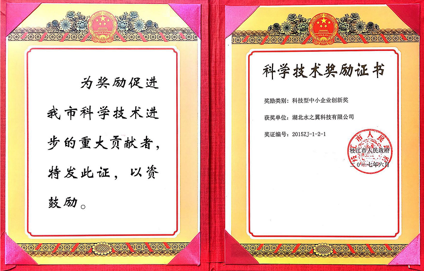 2017年6月科学技术奖励证书-科技中小型企业创新奖