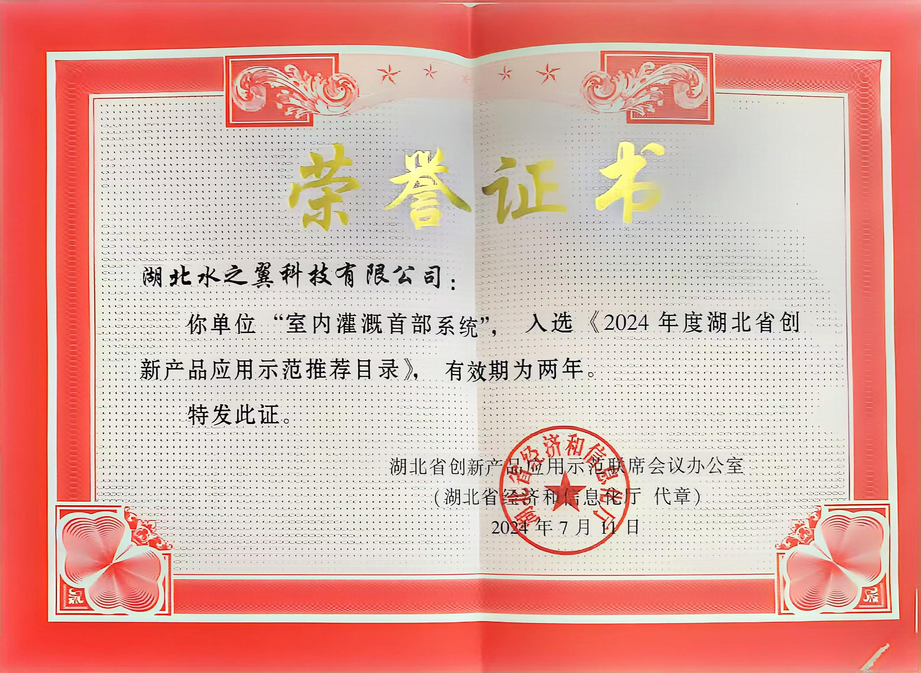2024年度湖北省创新产品应用示范目录(室内灌溉首部系统)